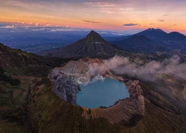 The journey leads to one of the most unique landscapes on Mount Ijen—a place where the earth reveals its rarest and most extreme side. Beneath a sky full of stars, blue flames rise from within the crater, glowing in the darkness like something from another world.
