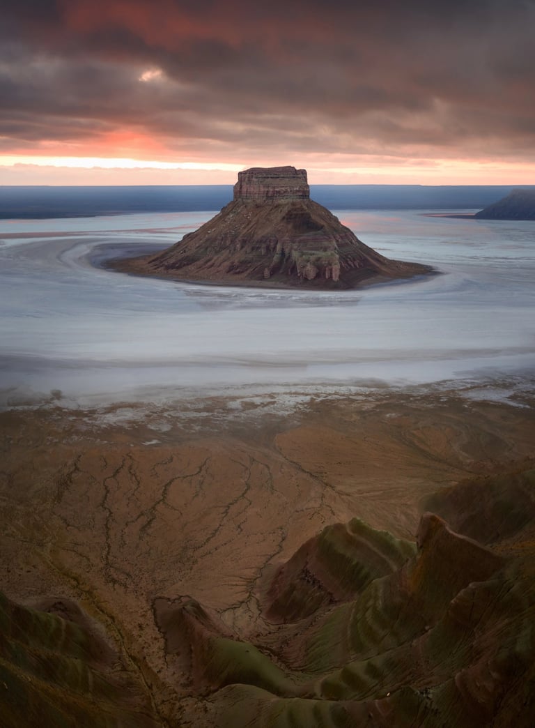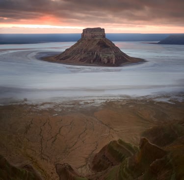 A sunset session will be held here, focusing on the elevated perspective and the way light defines the contours of the terrain—creating strong lines, shadows, and layers across the canyon.