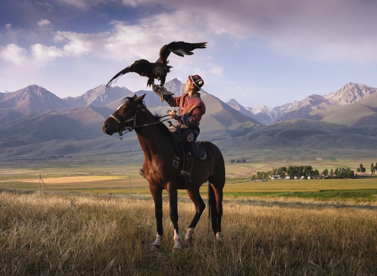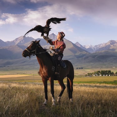The day begins with a unique cultural experience—photographing a local eagle hunter, a tradition that has been passed down for generations in Kyrgyzstan. The connection between the hunter and the eagle reflects a deep relationship with nature, offering a powerful and authentic subject to capture.